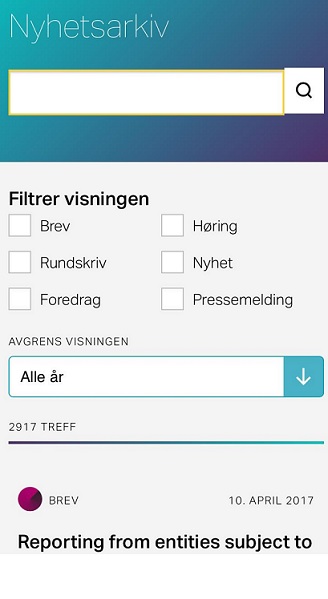 Registrene våre har også gjennomgått en omfattende modernisering. Virksomhetsregisteret, shortsalgregisteret, markedsadvarsler, prospektregisteret og oversikt over Finanstilsynets vedtak om pilar 2-krav har fått bedre navigasjon og mulighet for søk.