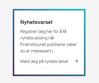 Registrer deg for å få nyhetsvarsling når Finanstilsynet publiserer saker du er interessert i.